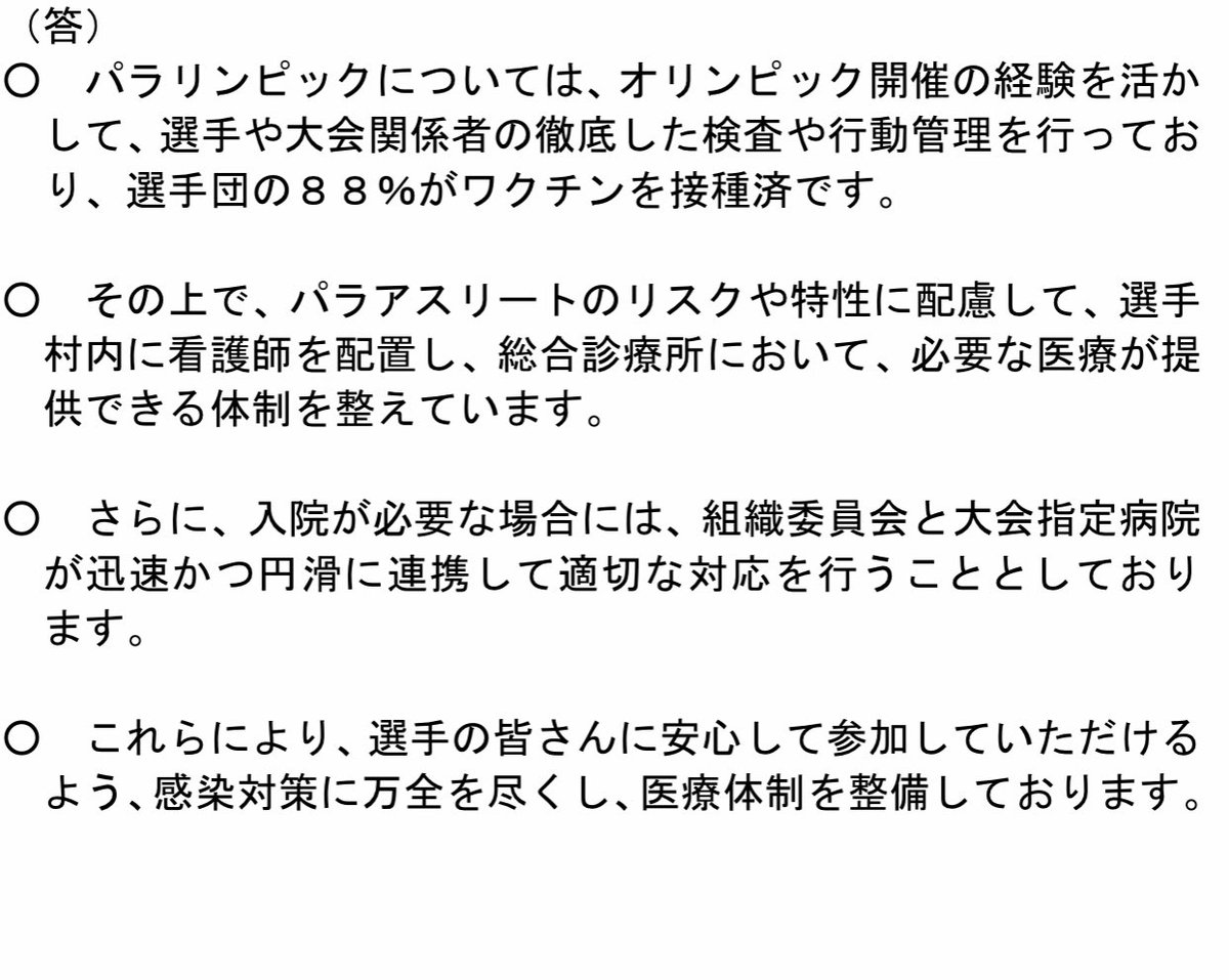 菅総理は私の質問に答える時にいつも思い込みがあるような気がする。私は外国人だから、外国人の事しか考えない人と総理が思うかもしれない。なので海外選手らが優遇されたら私も「なるほど問題ない」と安心して報道すると総理が思って答えた可能性がある。誤算、真っ逆だ。国民のことの方が気になる。