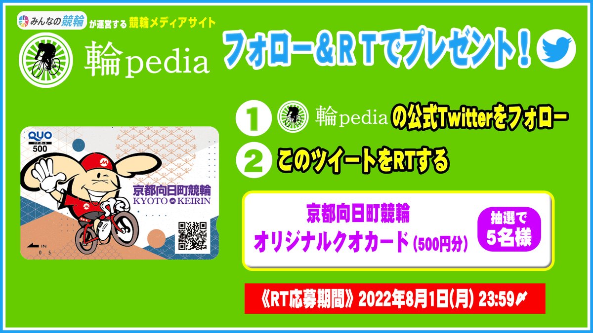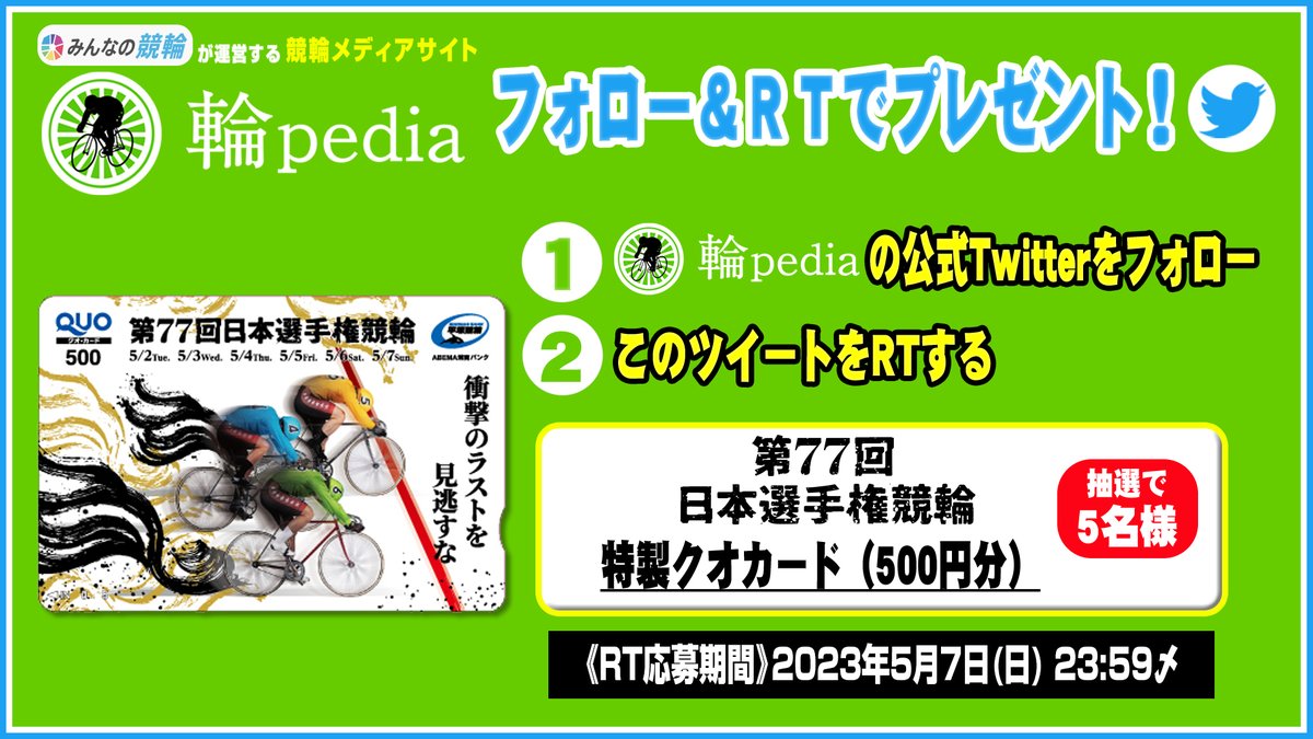 @raichan_toyama&@minnano_keirin&@rinpediaをフォロー&RTで応募✨