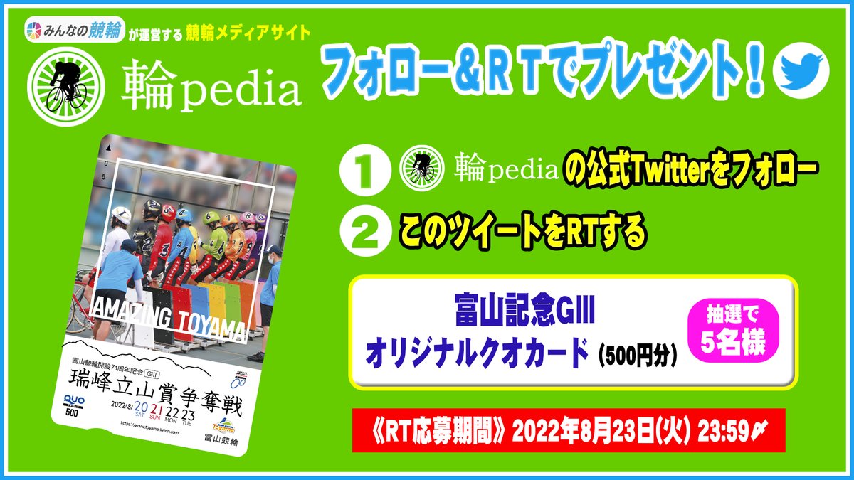 8/21~23 『富山競輪FⅡ 輪pedia・みんなの競輪杯』開催!公式Twitterが発信する3ツイートをRT😊