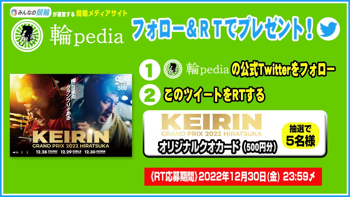 @raichan_toyama & @minnano_keirin & @rinpedia をフォロー&RTで応募✨