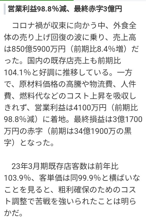 とやらの話題、デマですね。今期が赤字というだけ。売上8.4%増もコスト高で赤字だが、その辺で一部で落ち着き始めているし特に問題はなさそう。