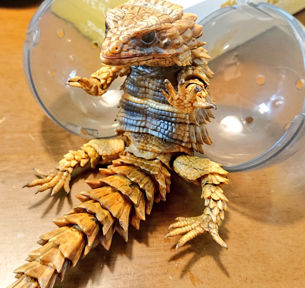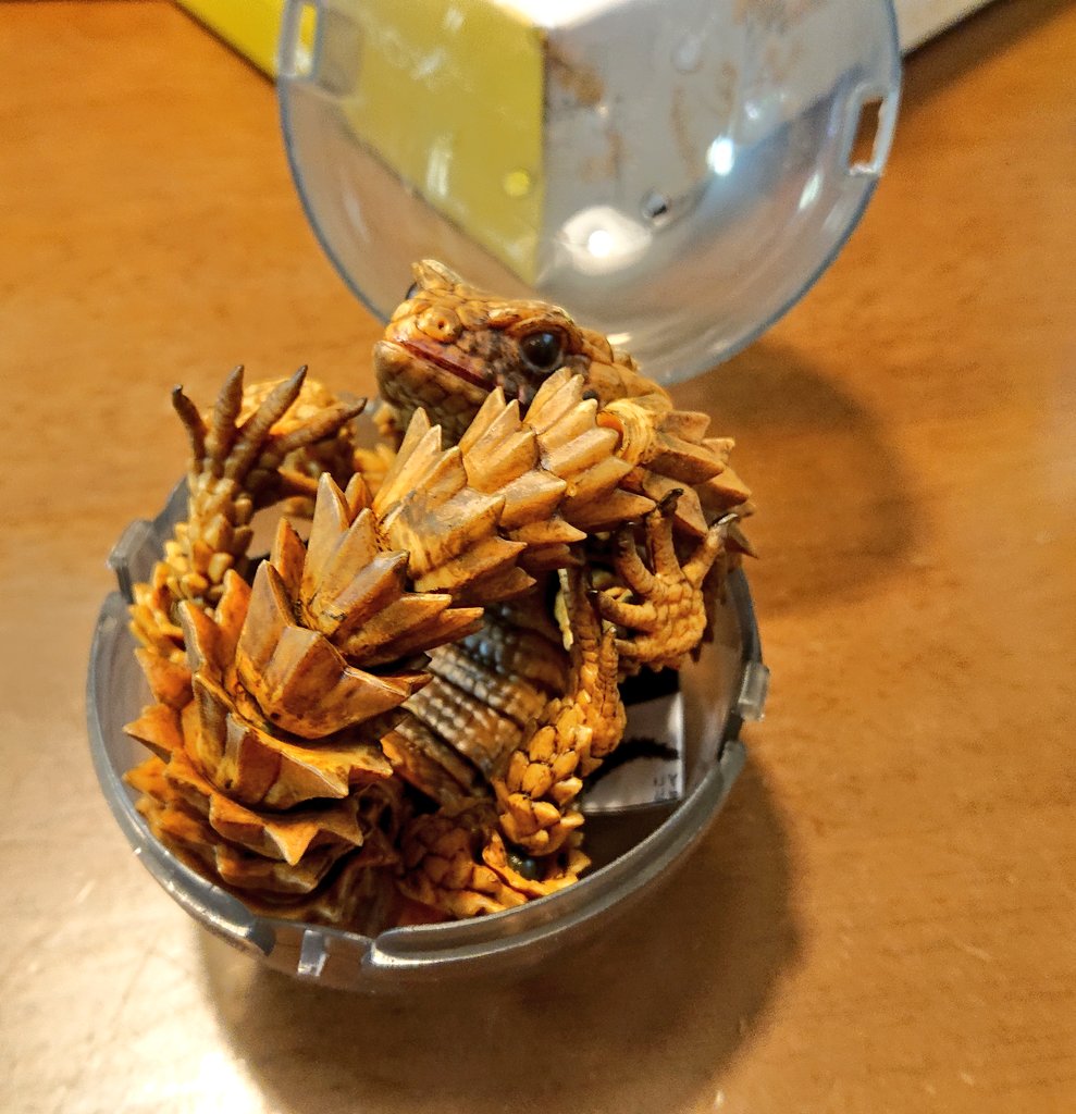 いきもの大図鑑アドバンス アルマジロトカゲ回してきました(1回2千円) カプセルに丸まって入ってるのかわいい🤭まぁお高いだけあってめちゃくちゃ動くしクオリティもしゅごい!!(ちょっとポロリしやすいけど) 1回しか回さなかったけど見つけたらまた回そうかな😙