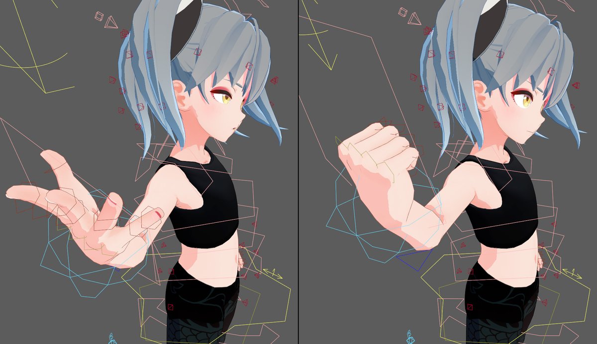 これも簡単なリグだけど、揺れもの任せじゃ作れないシルエットをザックリ作るのに便利。スチル撮影用。