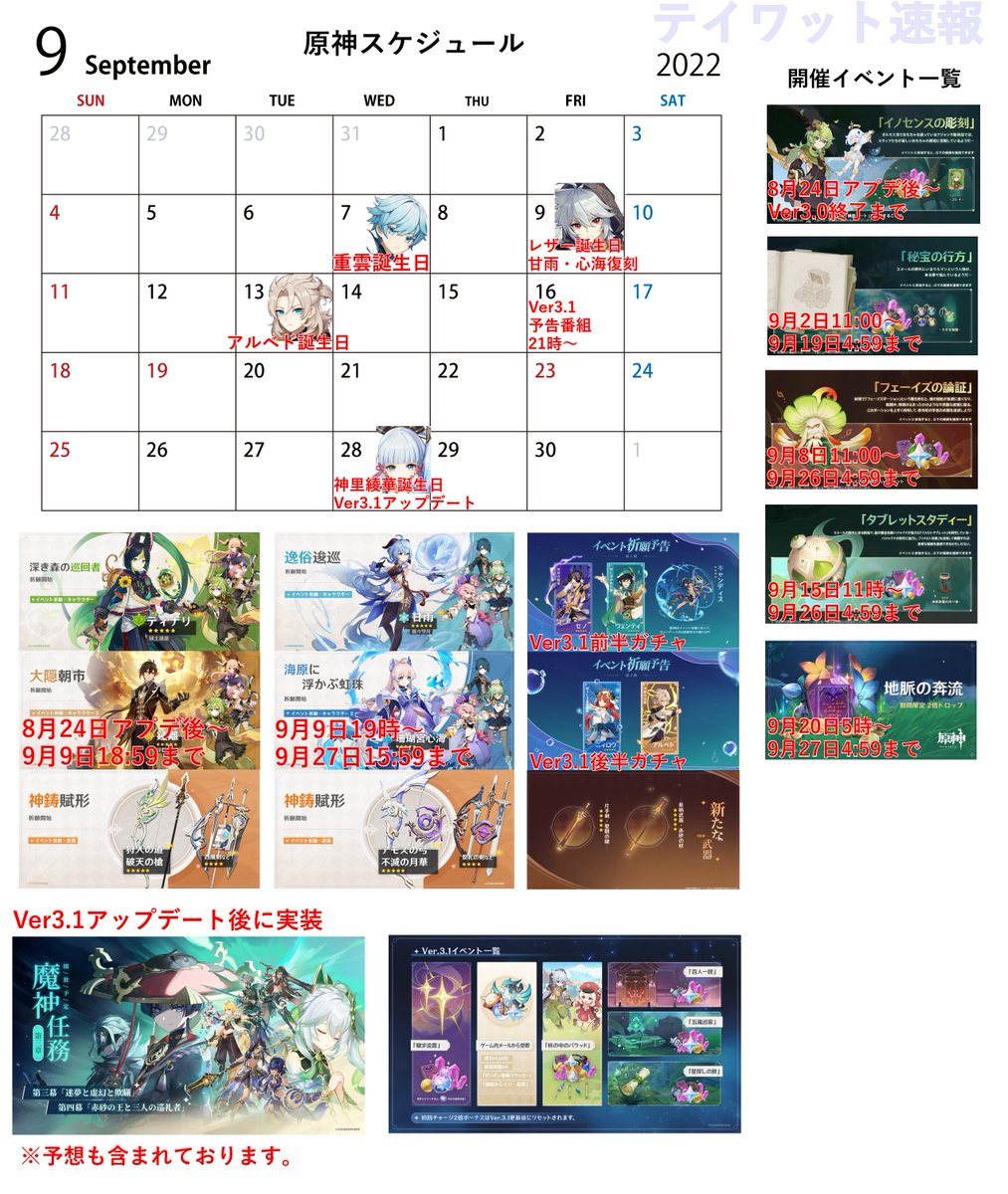 9月の原神スケジュールを更新しました!