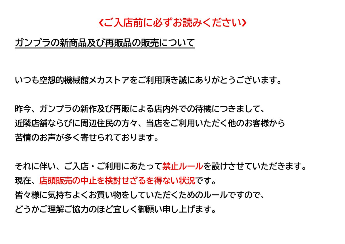 【再販、新商品販売に関してのお願い】 日頃より空想的機械館メカストアのご利用ありがとうございます。 ※添付画像のご確認お願い致します。 ご理解とご協力の程よろしくお願いします。 スタッフ一同より