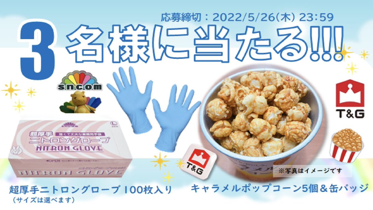 超厚手ニトロングローブとポップコーン5個&缶バッジが抽選で3名様に #プレゼント🎯✨