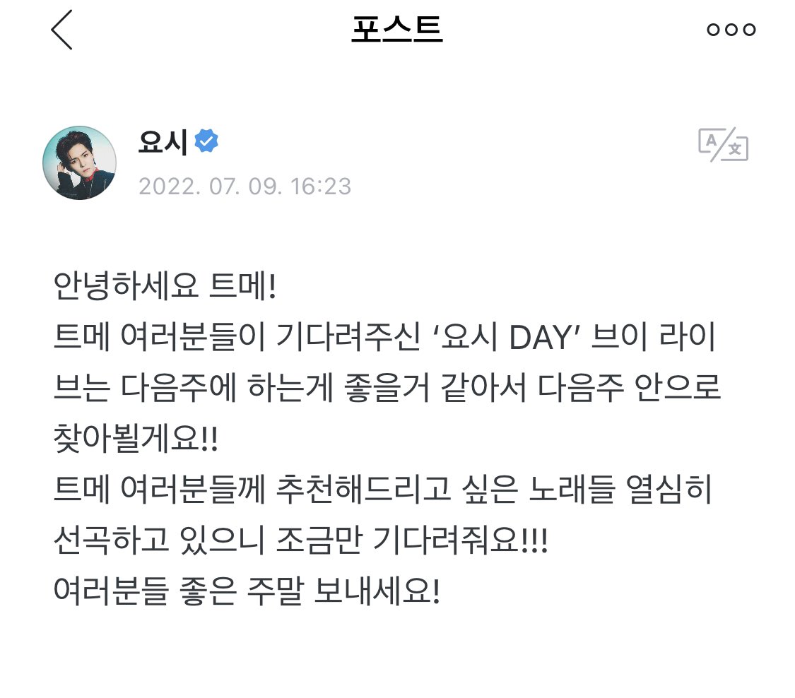 ํธ๋ฉ ์ฌ๋ฌ๋ถ๋ค์ด ๊ธฐ๋ค๋ ค์ฃผ์ โ์์ DAYโ ๋ธ์ด ๋ผ์ด๋ธ๋ ๋ค์์ฃผ์ ํ๋๊ฒ ์ข์๊ฑฐ ๊ฐ์์ ๋ค์์ฃผ ์์ผ๋ก ์ฐพ์๋ต๊ฒ์!! ++++