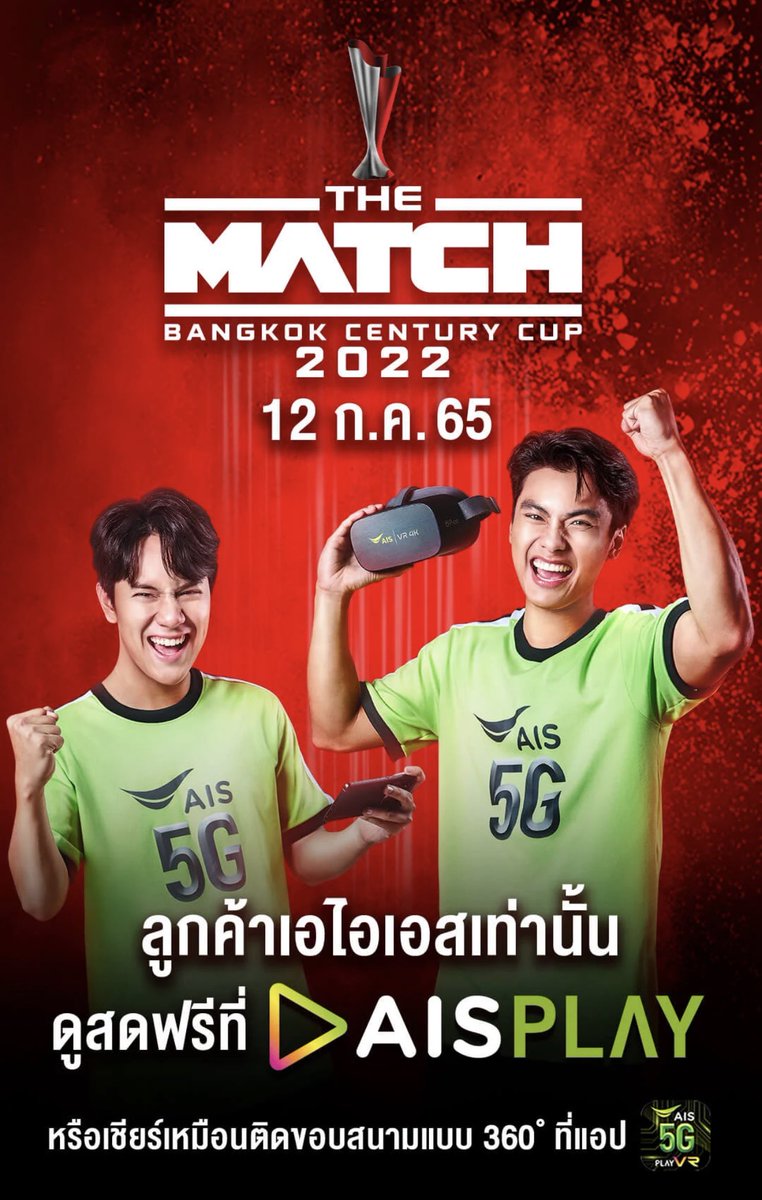 ลูกค้า AIS ดูศึกแดงเดือด The Match Bangkok Century Cup วันที่ 12 ก.ค. 65 ได้ฟรี!!! ทาง AIS Play นะค้าบบบ ใครยังไม่มีซิม AIS รีบสมัครเลยจ้า 🤩🤩🤩