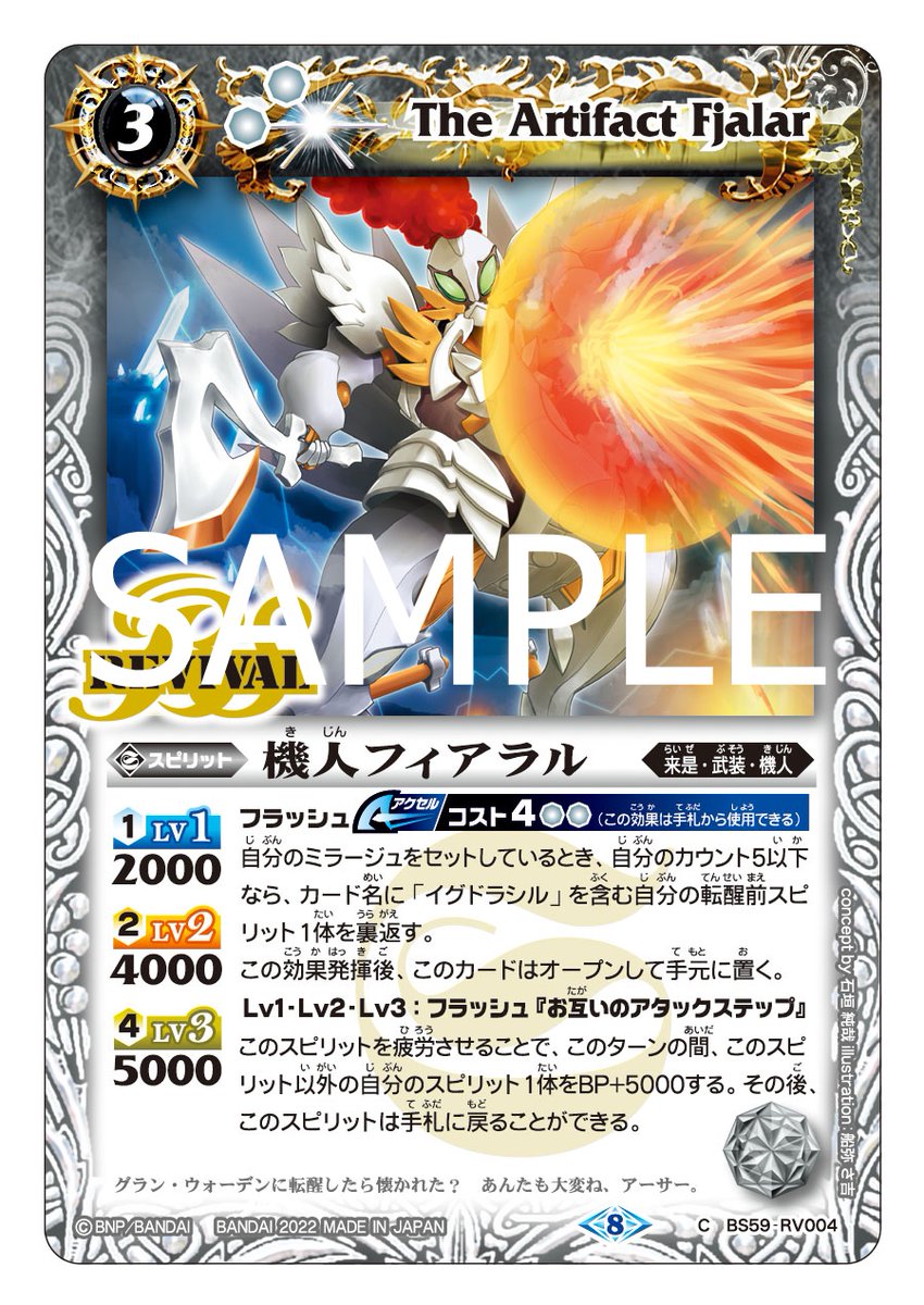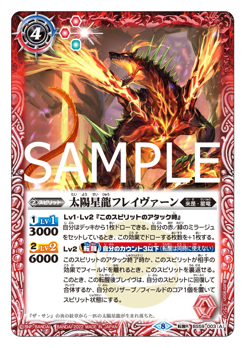 優秀なバースト効果に加えて、Lv2・3では特定の自分のスピリットがBPを比べて破壊されたとき、フィールドに残せる効果を持っているぞ!