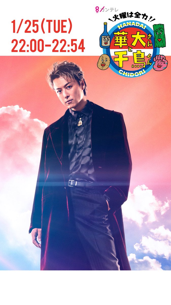 カンテレ・フジテレビ「火曜は全力!華大さんと千鳥くん」にTAKAHIROがゲスト出演致します。