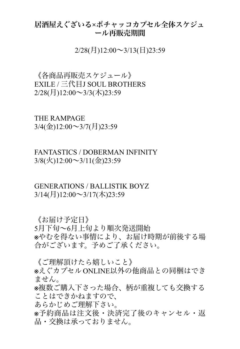 他グループカプセルスケジュールは画像をご確認下さいませ。
