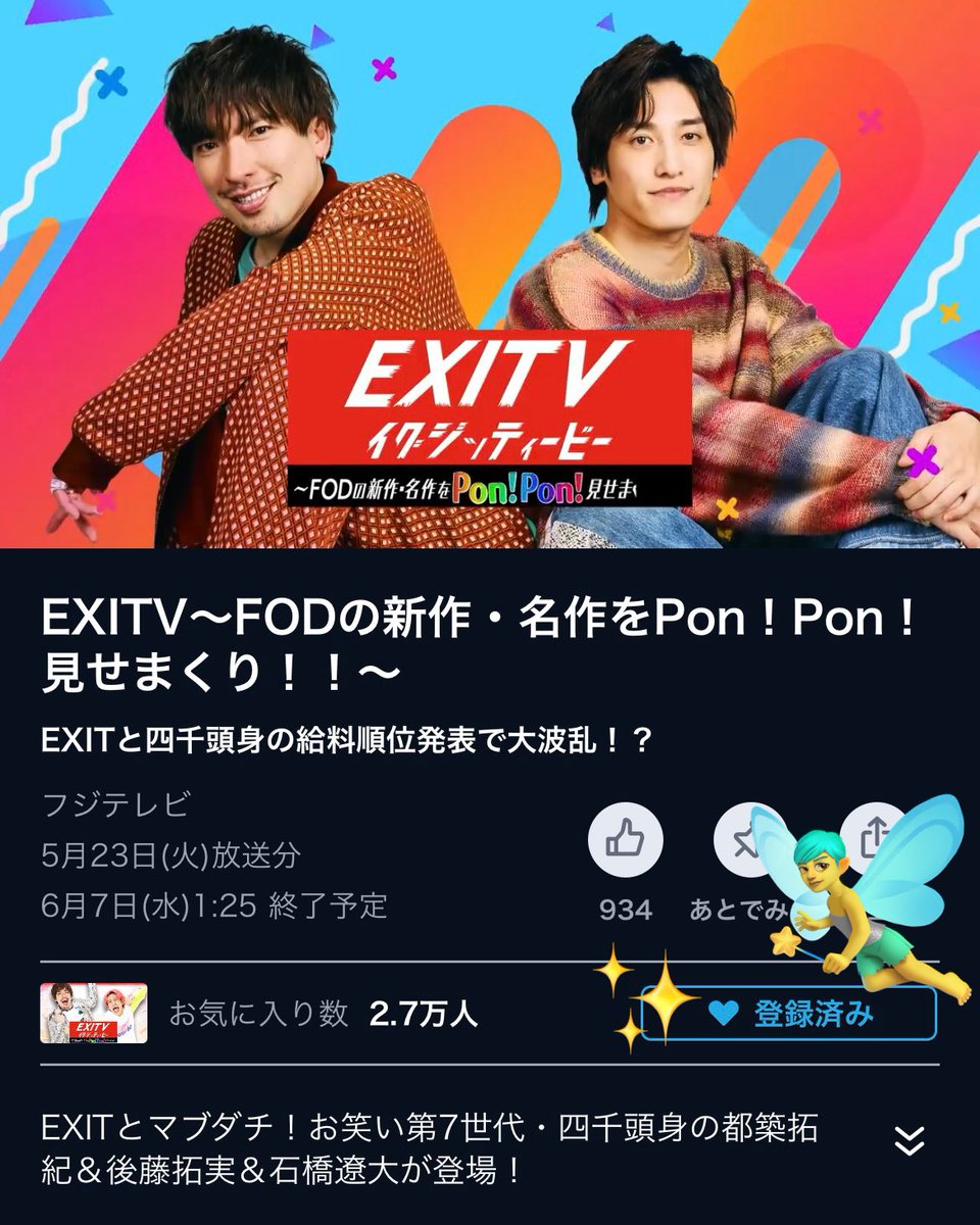 次回のフジテレビ「#EXITV」は