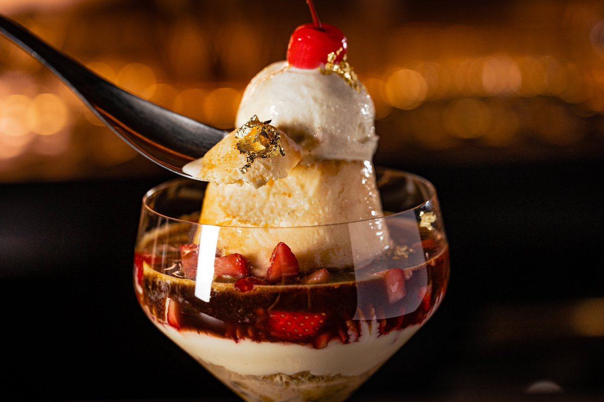 名古屋コーチンの卵を使用した口溶け滑らかな濃厚硬めプリンとクレームブリュレ、アーモンドの生地にエスプレッソシロップをかけて食べる背徳感ある大人の贅沢パフェ🍸