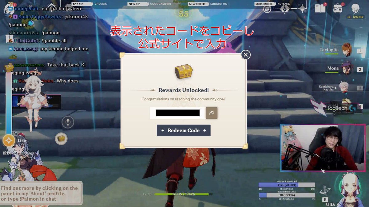⑥公式サイト(genshin.mihoyo.com/ja/gift)に入力
