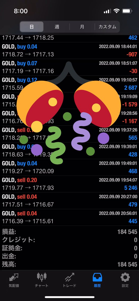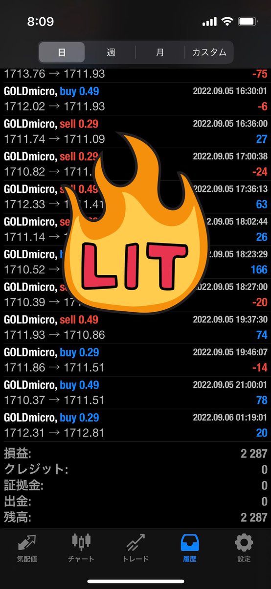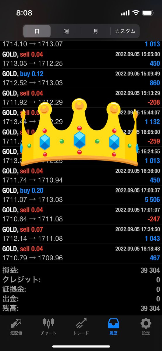 2022/09/05~09/09の利益