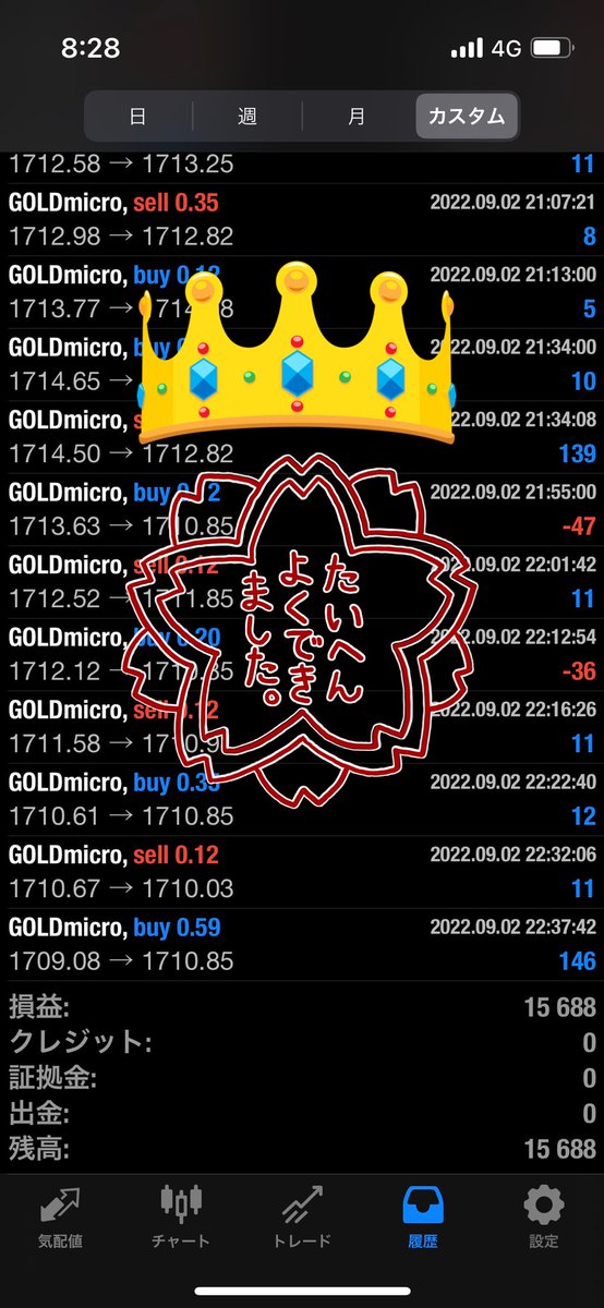 2022/08/29~09/02の利益