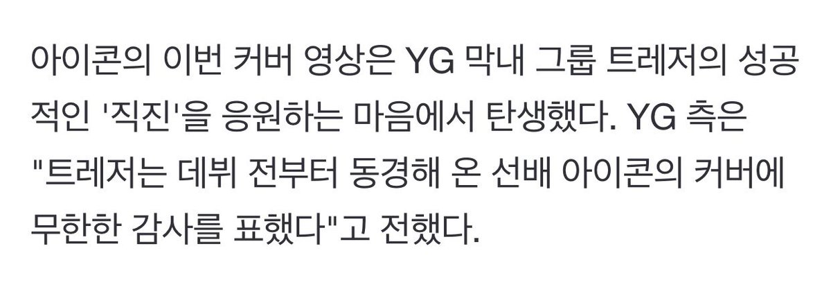 iKON's cover video was created with the support of YG's youngest group, TREASURE and their successful "JIKJIN." YG said, "TREASURE expressed infinite gratitude for the cover of their senior iKON, whom they have admired even before debut.