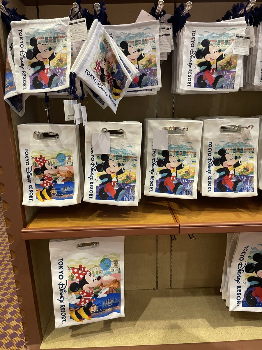 今日からパークのお土産袋の絵柄グッズが発売✨私はサブバッグに欲しくて小さいサイズを購入です‼️ でも大きい方が人気かな?
