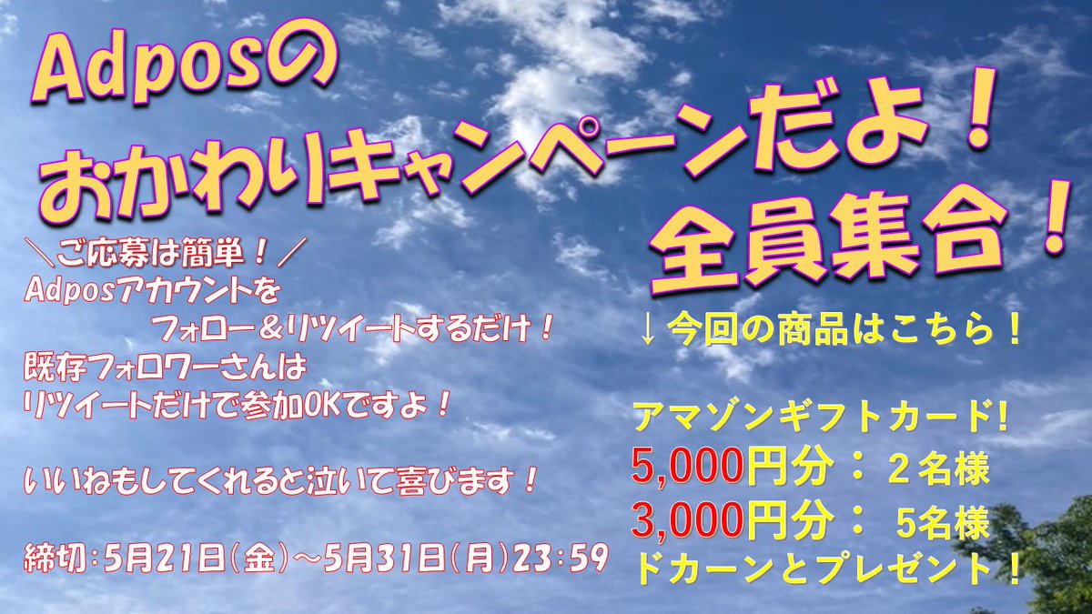 リベンジ!アドポス全店 合計30,000の壁!フォローRTキャンペーン発動!! adpos.jp/blog/news/7000/