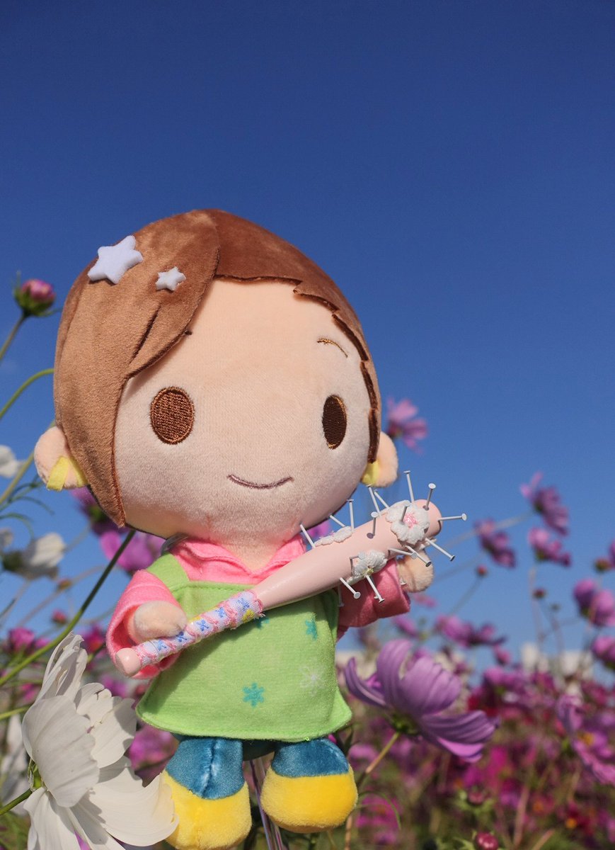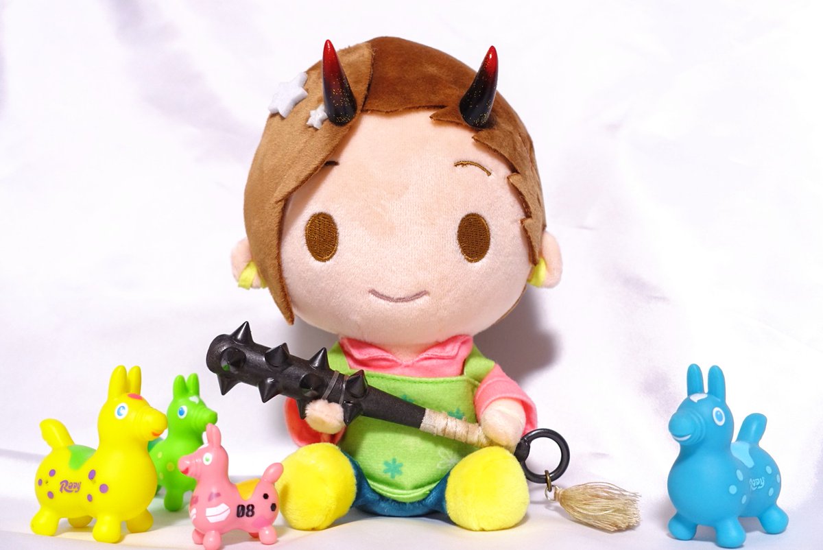 せっかくなので、みのりさんぬいに「鬼の角・赤/黒」と「鬼の金棒・14cm」を装着。(花屋の衣装のままで失礼します)