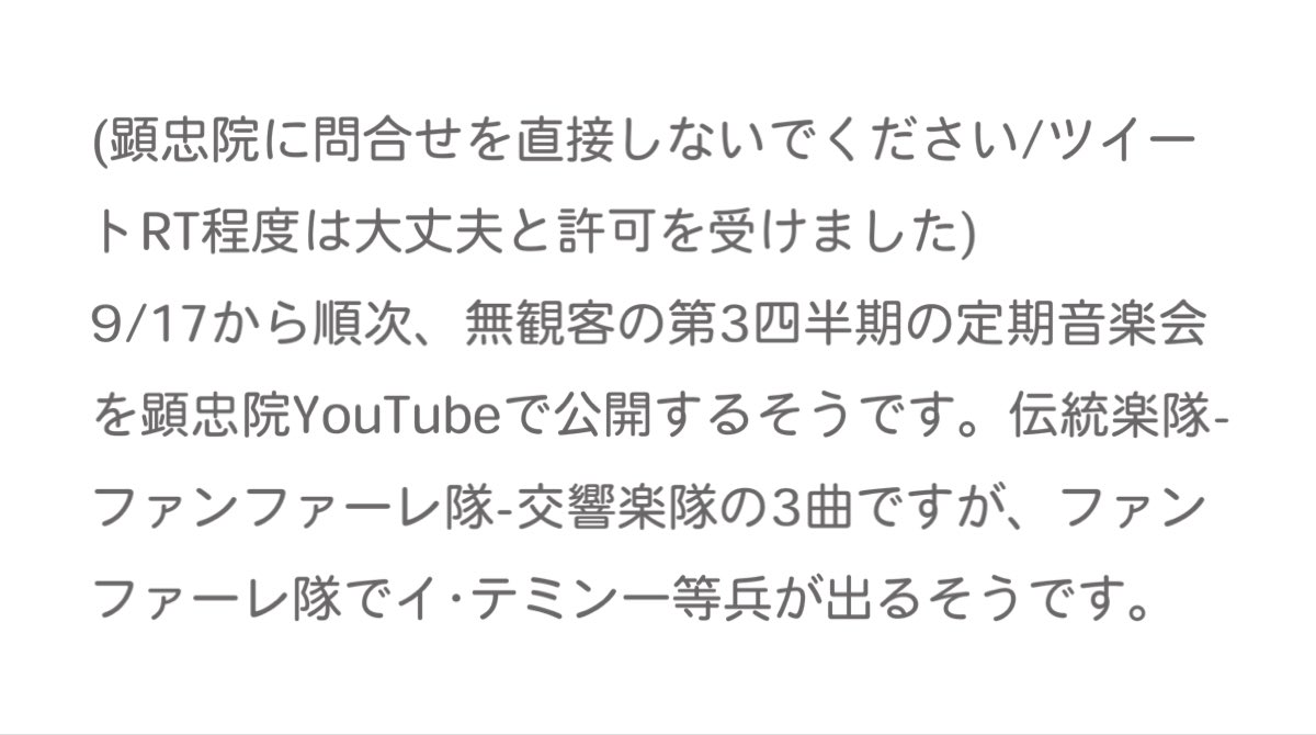 顕忠院の定期音楽会にテミンが出演し、YouTubeで公開されるそうです🎷🎺🥁🎶