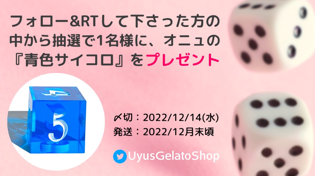 フォロー&このツイートをRTして下さった方の中から抽選で1名様に、オニュの『青色サイコロ』をプレゼント❣️