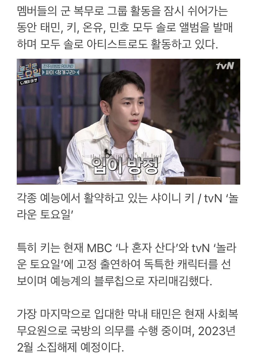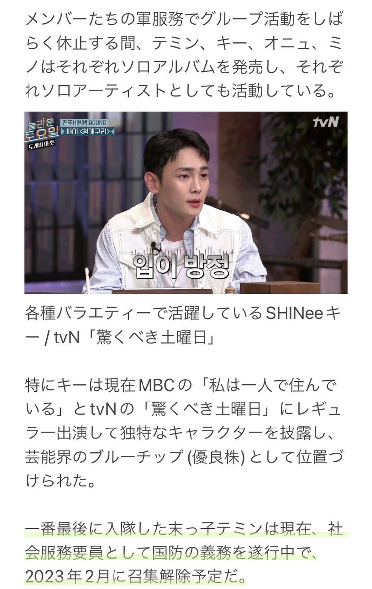 テミンは来年2023年2月に召集解除(服務終了)予定とのこと🐥
