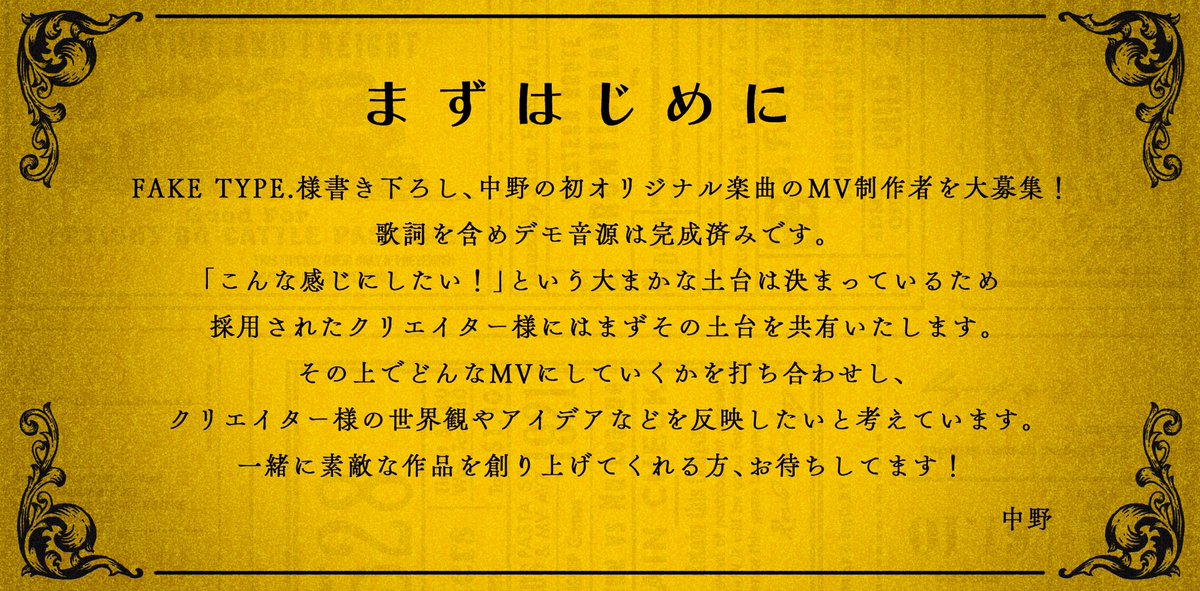 ボクの最近の事情諸々で新しいクリエイター様探しに時間を費やすのが困難なため、急遽ですがオリジナル楽曲のMVのイラスト・アニメーションを制作してくださるクリエイター様を募集する事になりました!!!!!