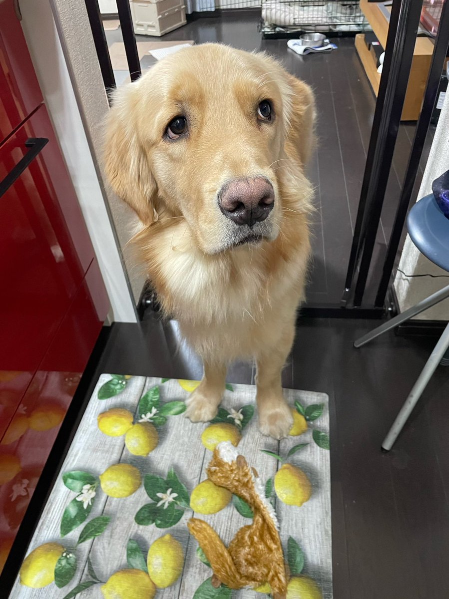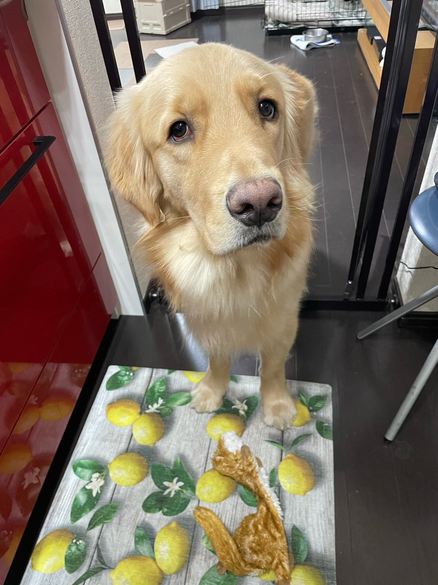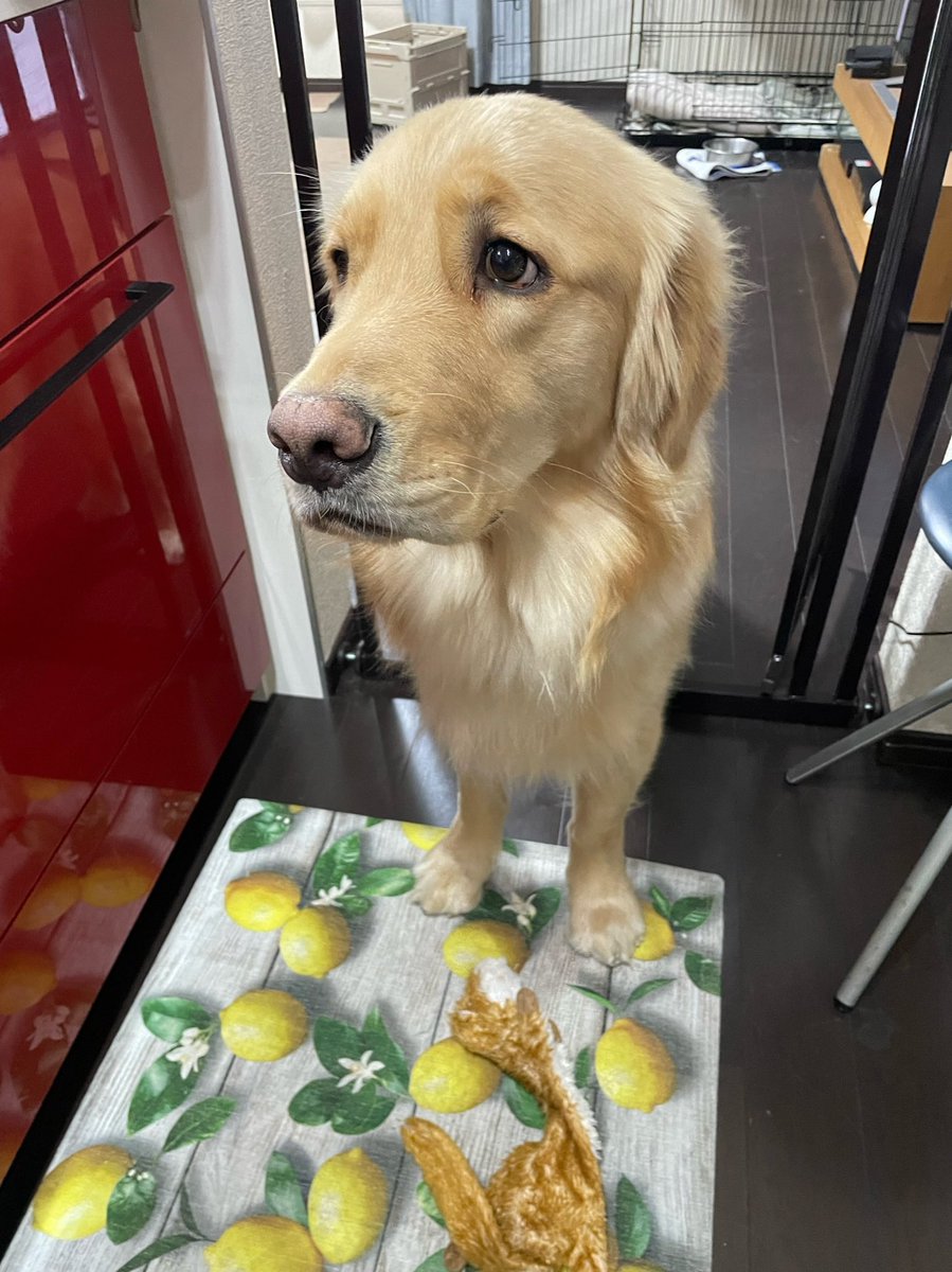 キッチンには入らない約束を小さい頃から守ってましたが、それどころではなかったようです。不安げな表情でした🥲