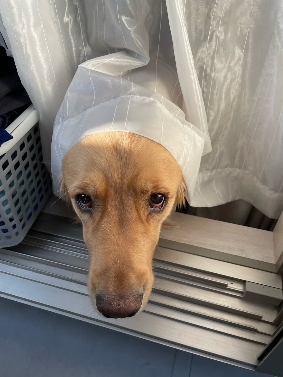 入ってはいけないキッチンに思わず入ってしまいましたが、我に返ったのか、縫ってる間はキッチンの外に出て待っててくれました😌