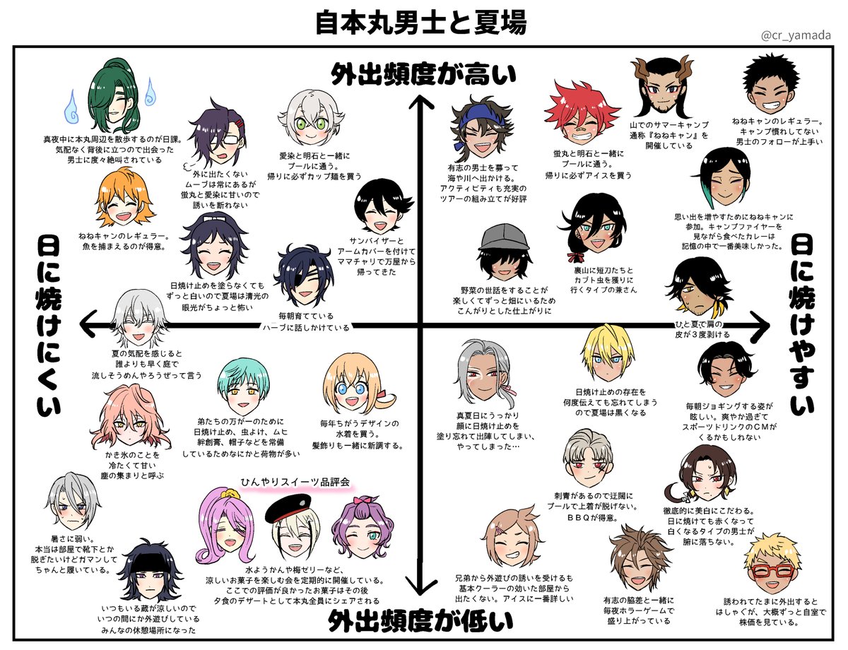 自本丸男士と夏場(再掲) ※男士が日焼けしてます