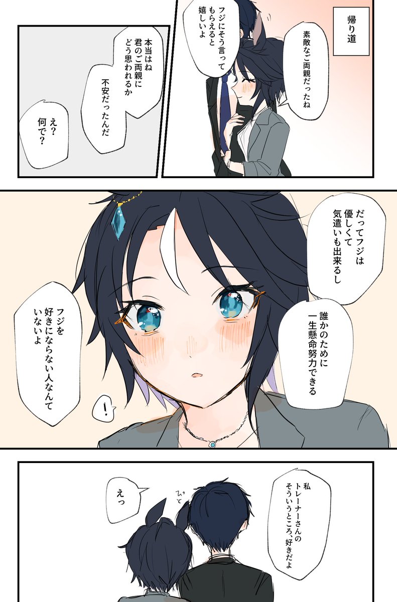 「目に映る君は」でフジがやった言動、つまりはトレーナーがフジに対してやってたことなんだよなってめちゃ萌
