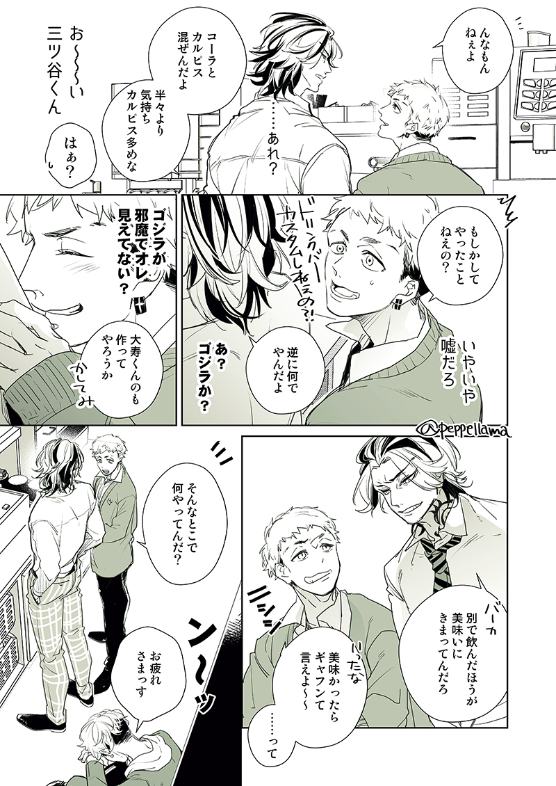 仕事で徹夜続きのみつやくんがバグってたいじゅくんのたいじゅくんにおはようのあいさつするまんがです🍄🍄 poipiku.com/3386178/546500…