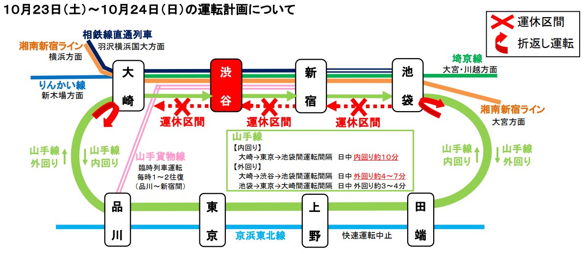 JR東日本は10月に山手線の一部区間を約52時間にわたって運休すると発表しました。