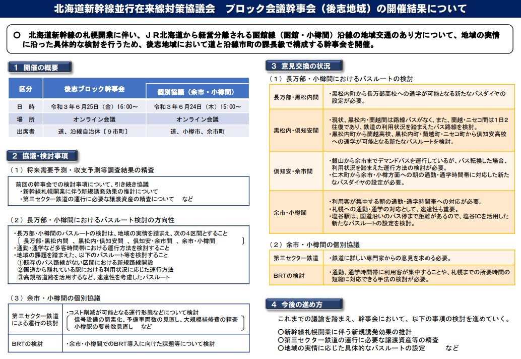 フォローできていなかったのですが、本日北海道新幹線並行在来線対策協議会の議事録を見たところかなり厳しい状況でした。