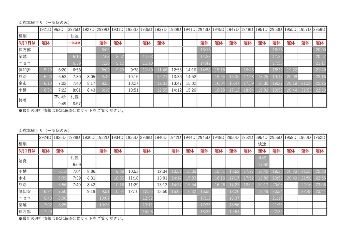 函館本線長万部~倶知安~余市間はもはやバス転換が確定的な状況で、輸送量の多い余市~小樽間の3駅間のみ三セクまたはBRTが検討されています。