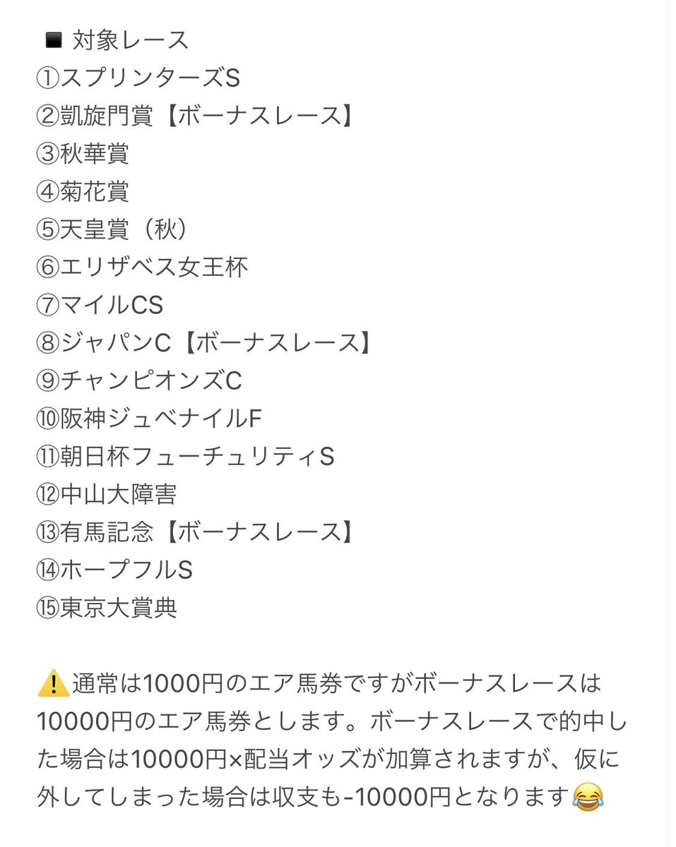中々予想をする時間が確保できないので、現時点で買うか迷ってる15レース(マイルCS含む)を載せてます‼️