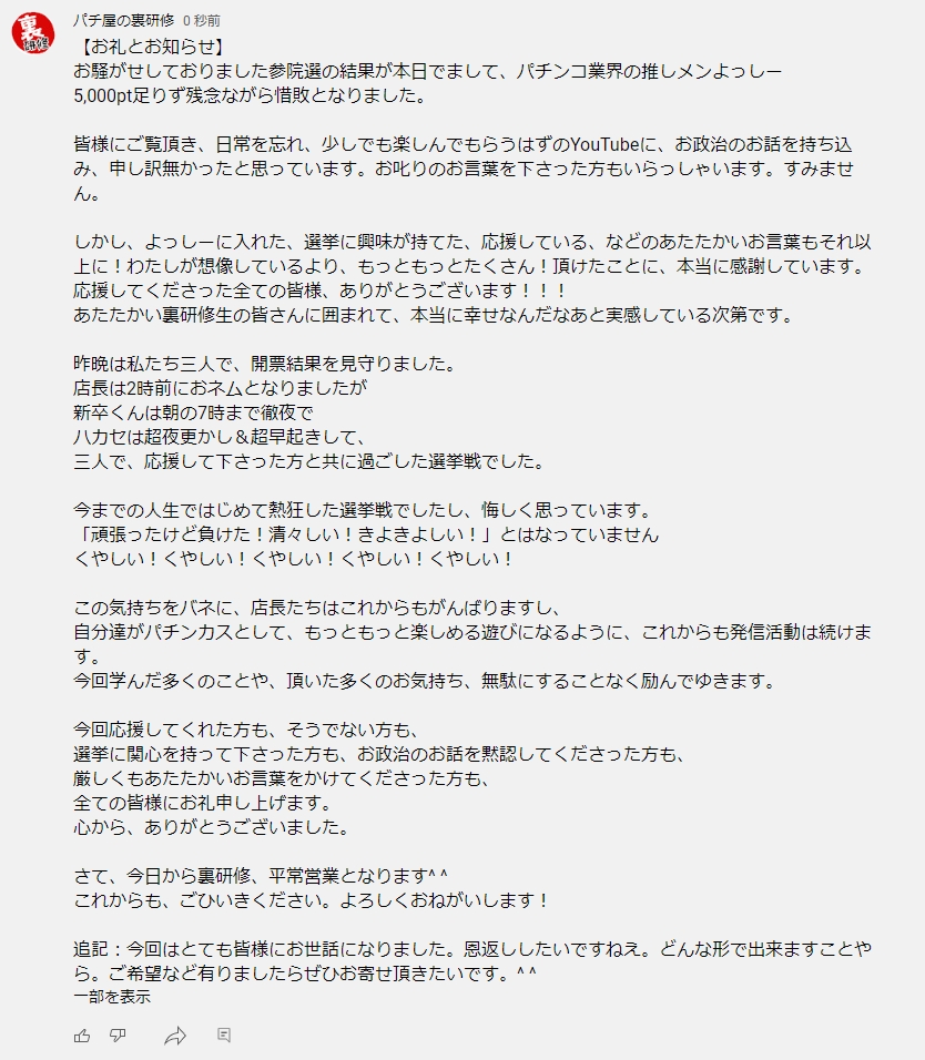 (動画アップが)不謹慎だと一部ご意見頂きましたので、わたしなりの意思表明です