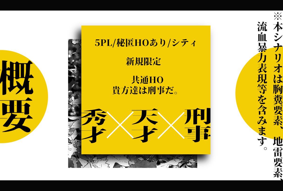 売れない推理作家の小説に酷似した事件を名探偵と共に追う2PLシナリオ。
