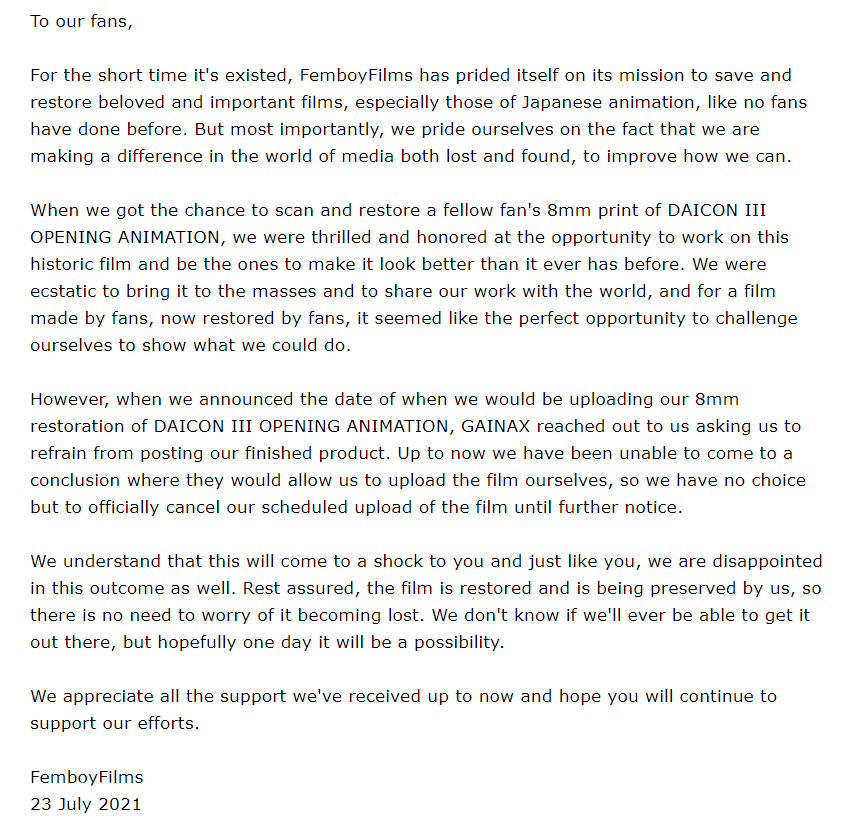 @GAINAXNET and the members of @FilmDaicon have given us the permission to reveal the following information. Please read.