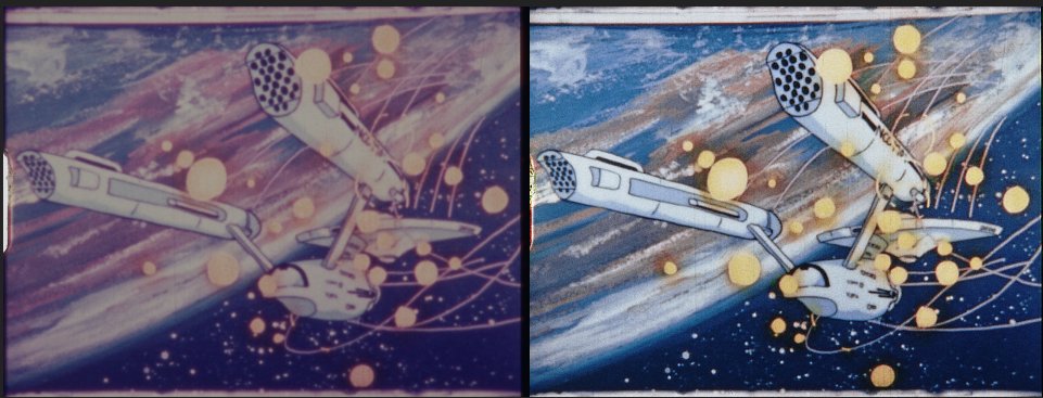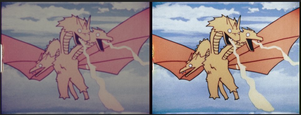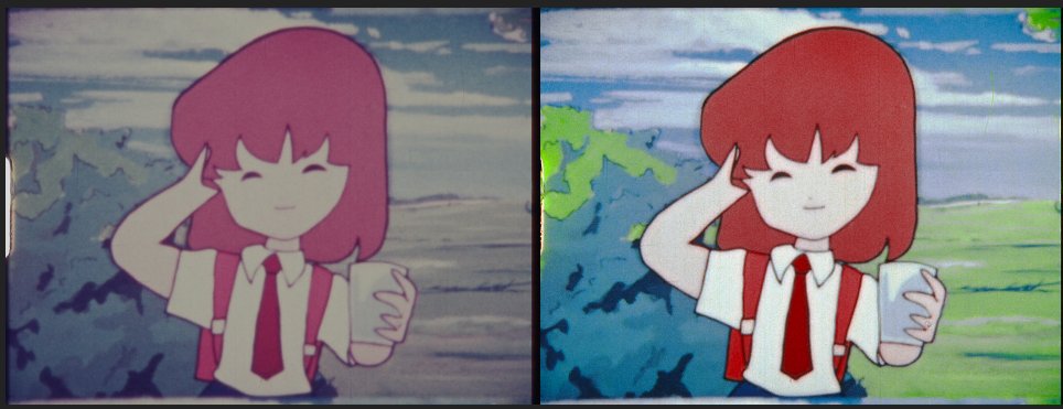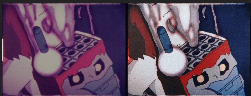 You guys seem to really love comparisons! Well, we got one for ya here! Left is Dragon Box (DVD), right is what a 16mm remaster from us could look like! (Note, this is not representative of a final product, just a quick test.)