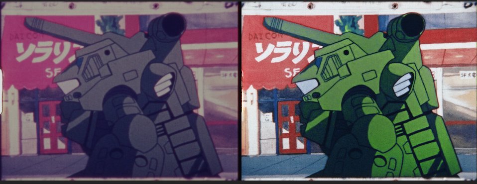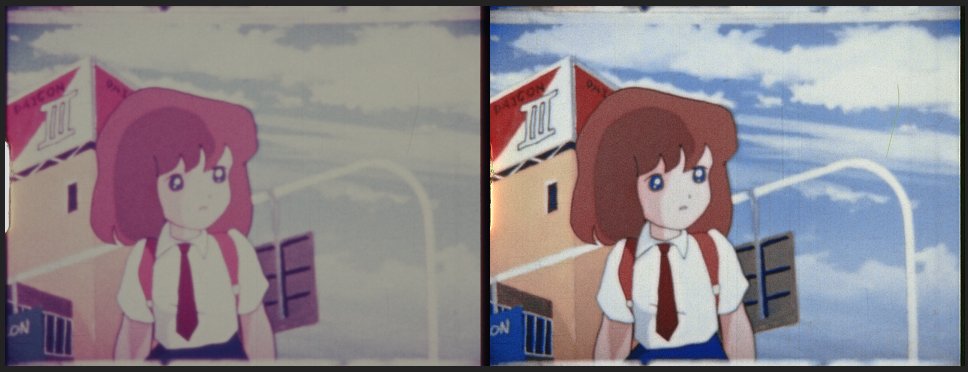 I'm sure you're curious bout the status of the #DaiconIII #8mm Restoration. Here to announce it'll finally be released on Aug 22, 2021, the film's 40th Anniversary! Been some time since we showed work on it, but if you need a reminder on how much difference the restoration makes: