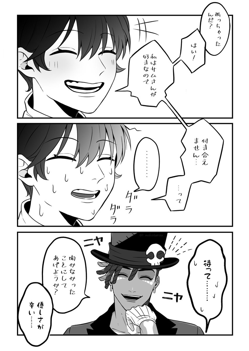 3月6日のサムさんの日ということで、n番煎じネタですが事故でサムさんを押し倒してしまう監督生の話