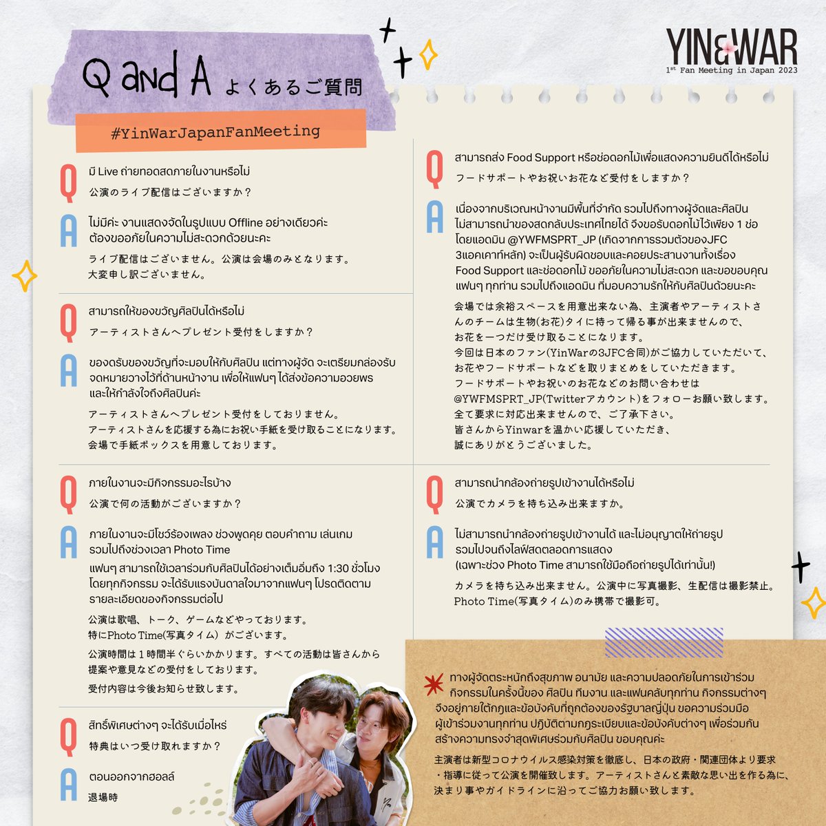 สำหรับแฟนๆ ชาวไทยที่ต้องการจองบัตรเข้าชมงาน Yin&War 1st Fan Meeting in Japan 2023 ยังสามารถคลิกที่ 👉🏻 docs.google.com/forms/d/e/1FAI… เพื่ออ่านรายละเอียด (บัตรมีจำนวนจำกัด) 🙏🏻#YinWarJapanFanMeeting