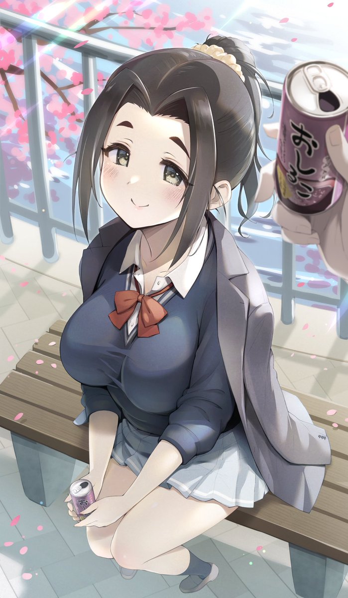 事務所まで近いし桜でも見ながら歩いて帰るか~ってなったけどまだちょっと寒くてPの上着を着せられた海老原菜帆ちゃんの絵 完成