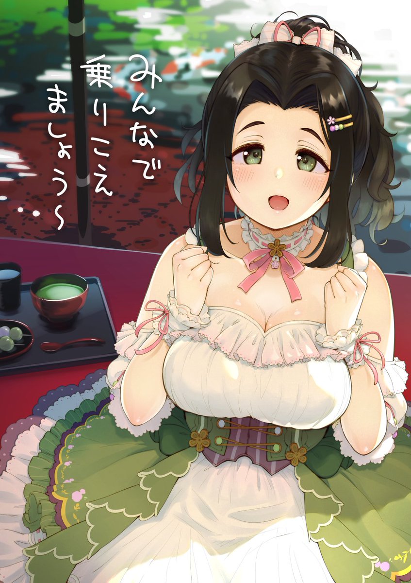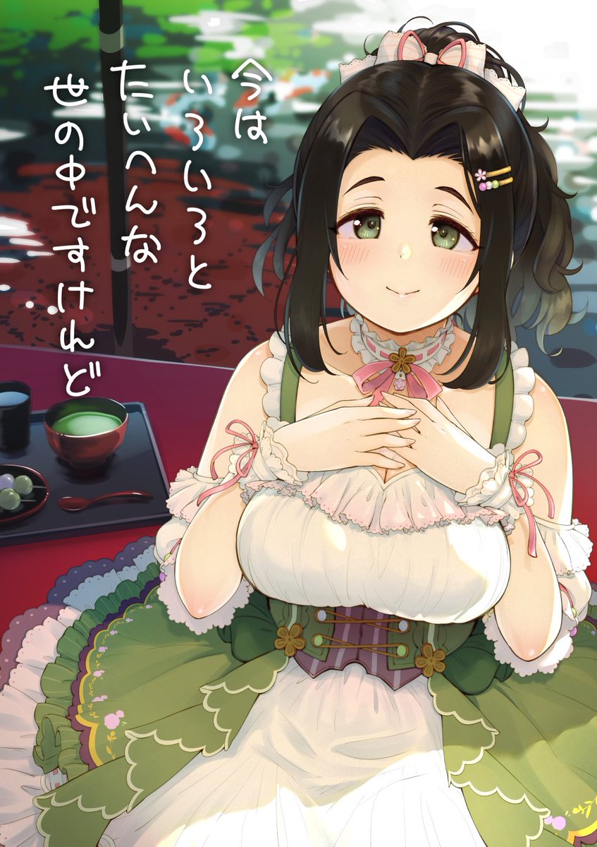 「運動したあとのあんこは格別に美味いな~」と、菜帆ちゃんと一緒にすごすうちにすっかり和菓子党になってしまったPとそんなPを幸せな気持ちで見つめる海老原菜帆ちゃんの絵です