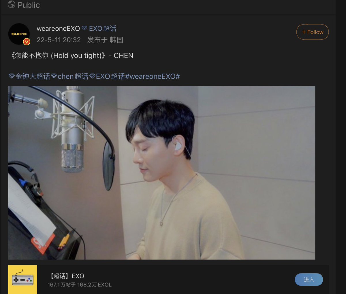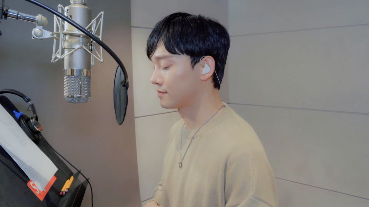 Jongdae is either in the recording studio practicing for his upcoming performances or he is recording kjd3