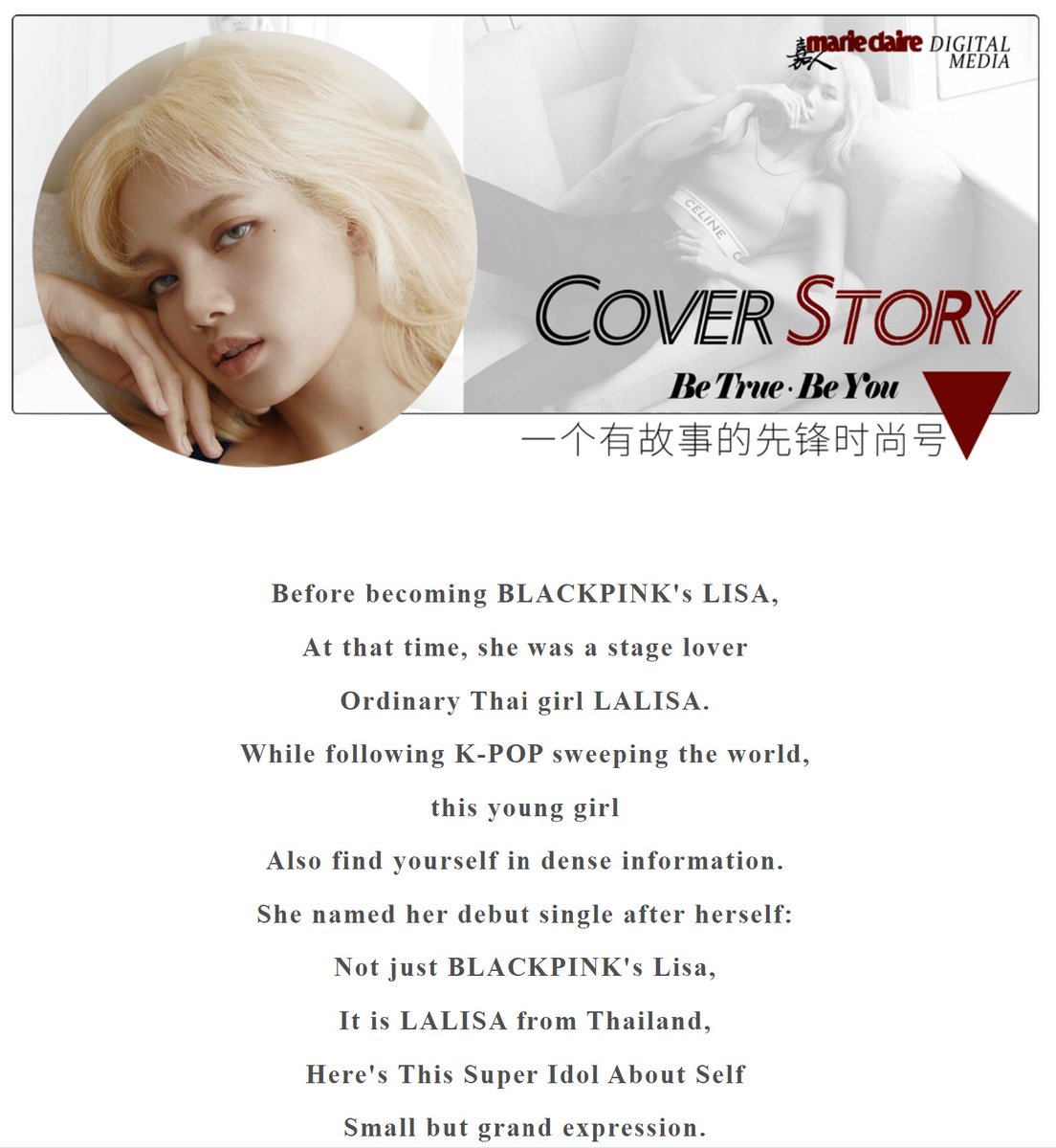 Marie Claire China x Lisa Interview in the cover story