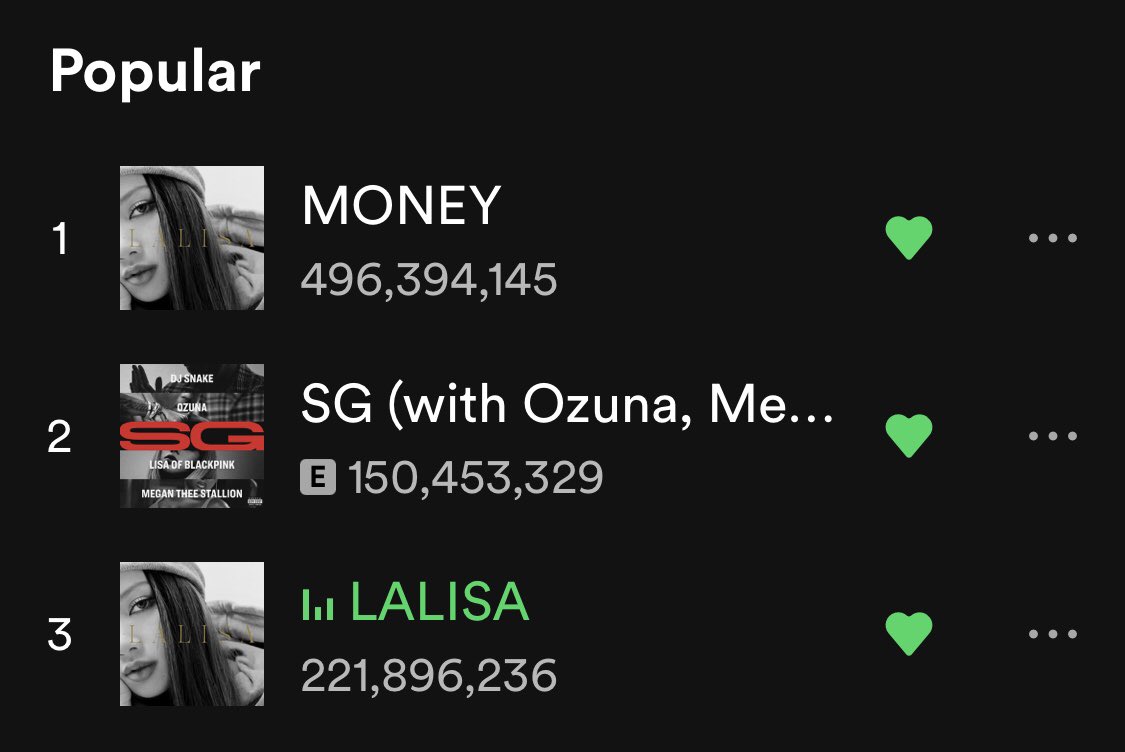 Stream LISA songs on Spotify. MONEY is almost 500M streams.