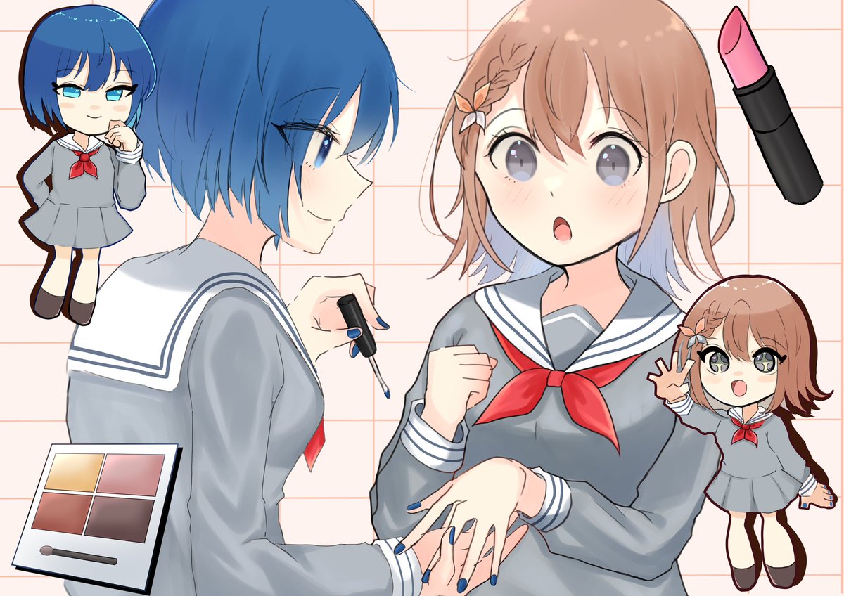 遥ちゃんにネイルしてもらっているみのりちゃんのイラスト モモジャンの化粧配信とか見てみたいな…